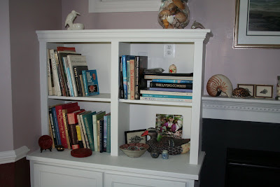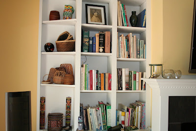 I promised Sonia at Leaves of Grass that I would post my books. They are a little sparse compared to her other friends photos, but I have given away about a dozen boxes of books--mostly paperbacks--to a church run store recently after my move. The professional books are still in boxes...and...
